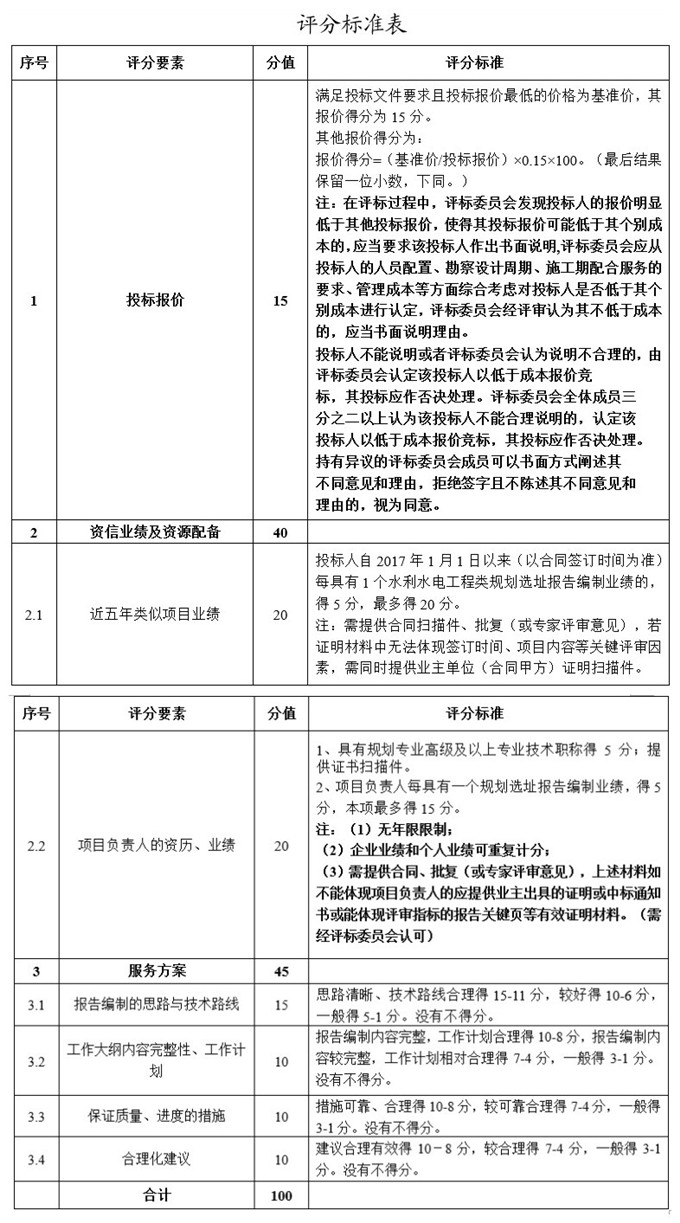 本項目在供應商滿足資格要求的前提下依據業績、資信、報價等方面進行綜合評選,詳見評分標準表。本項目最高限價為97.5萬元。