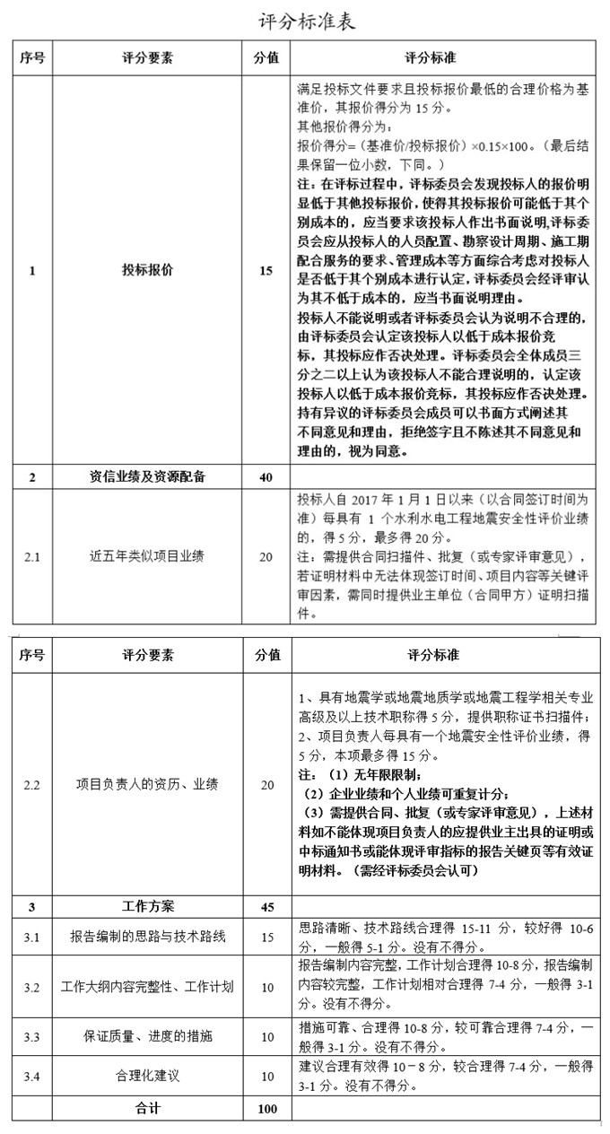 本項目在供應商滿足資格要求的前提下依據業績、資信、報價等方面進行綜合評選,詳見評分標準表。本項目最高限價為97萬元。