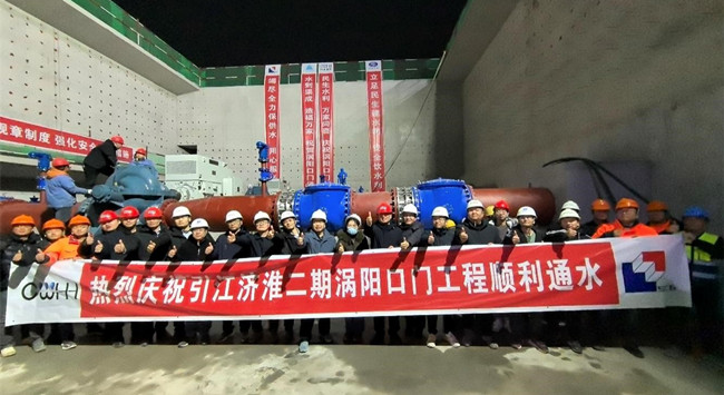 夜以繼日攻堅克難,彰顯中水淮河速度。渦陽水廠分水口門工程工期緊,任務(wù)重,永久用地及臨時用地征遷難度大,工程于10月7日正式開工;10月25日進行首倉砼澆筑(主泵房底板);12月8日完成除主泵房地面以上及副廠房一層以上的全部砼澆筑;12月24日完成全部涉及通水的水機設(shè)備、金屬結(jié)構(gòu)、閥管件、電氣設(shè)備安裝與調(diào)試,全部引水段、輸水段及永久供電線路施工,具備通水條件;12月26日工程順利通水,整體具備長期供水條件;12月27日,正式開始向渦陽地表水廠供水。安徽省水利廳就該工程年底通水目標(biāo)進行確認(rèn)后,公司黨委及領(lǐng)導(dǎo)高度重視,各部門、各專業(yè)派駐人員急現(xiàn)場之所急,解現(xiàn)場之所需,項目部及各參建單位錨定目標(biāo)、爭分奪秒,上下聯(lián)動全力保障既定目標(biāo)節(jié)點實現(xiàn)。