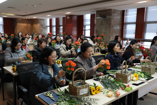 活動現場,花香四溢。活動中,花藝師介紹了鮮花常識,從鮮花的選擇與購買,到保養與擺放、花籃造型等方面,向女職工們傳授花藝知識。女職工們興趣盎然,邊聽邊學邊動手,興致勃勃地創作自己的插花作品,在芬芳的花香和愉快的氣氛中,與鮮花來了一次親密接觸。大家在感受美、欣賞美、創造美的過程中度過了一個愉快的下午。女職工們紛紛表示,將以更加飽滿的熱情投入到工作中,在各自崗位上發揮“半邊天”作用,為公司高質量發展而努力奮斗!