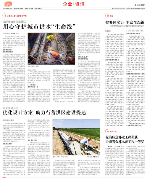 8月29日,《中國(guó)水利報(bào)》以“優(yōu)化設(shè)計(jì)方案 助力行蓄洪區(qū)建設(shè)提速”為題對(duì)我公司安徽省淮河流域重要行蓄洪區(qū)建設(shè)工程(六安市裕安段)項(xiàng)目進(jìn)行了報(bào)道。