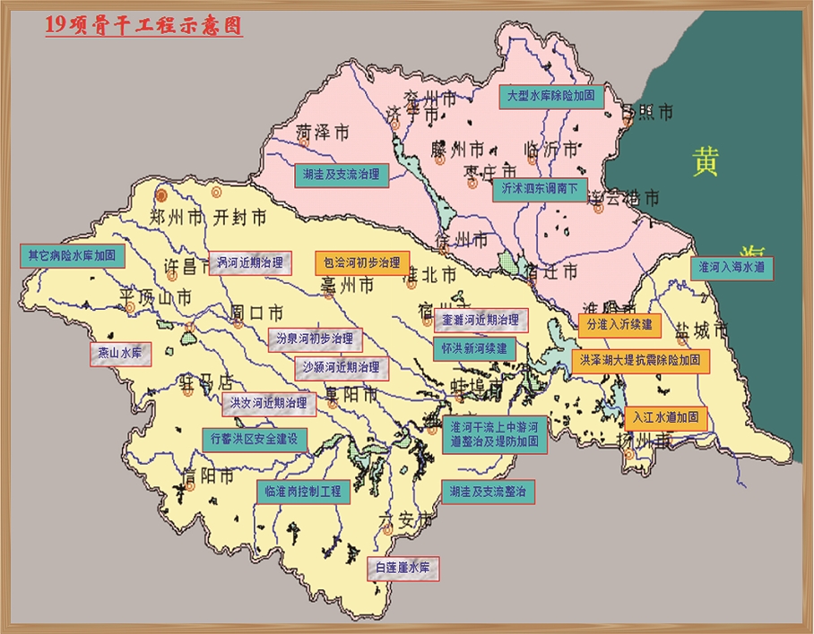 1991年大水后,國務(wù)院作出《關(guān)于進一步治理淮河和太湖的決定》。結(jié)合淮河中下游地區(qū)發(fā)生了特大的洪澇災害暴露出的問題編制了《淮河流域綜合規(guī)劃綱要》,提出治淮19項骨干工程。其中入海水道和蘇北灌溉總渠結(jié)束了淮河800年來無入海通道的歷史;臨淮崗工程是平原地區(qū)的一個巨型洪水控制工程,扼守著上游來水的咽喉之道,幾乎控制了正陽關(guān)以上的全部洪水,是淮河防洪體系不可缺少的戰(zhàn)略性骨干工程。