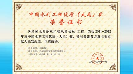 中國水利工程優質獎—沙潁河近期治理工程耿樓樞紐