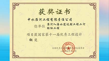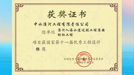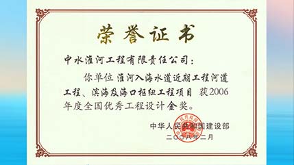 全國優(yōu)秀工程設(shè)計(jì)金獎(jiǎng)—淮河入海水道近期工程河道工程、濱海及海口樞紐工程項(xiàng)目