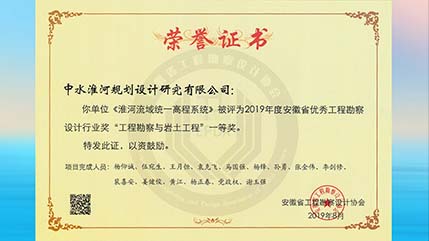 安徽省勘察設(shè)計(jì)行業(yè)獎(jiǎng)—淮河流域統(tǒng)一高程系統(tǒng)