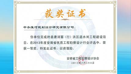 安徽省優(yōu)質(zhì)工程勘察設(shè)計(jì)一等獎(jiǎng)—姜唐湖蓄(行)洪區(qū)退水閘工程