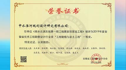 安徽省勘察設(shè)計(jì)行業(yè)獎(jiǎng)—藺家壩泵站工程